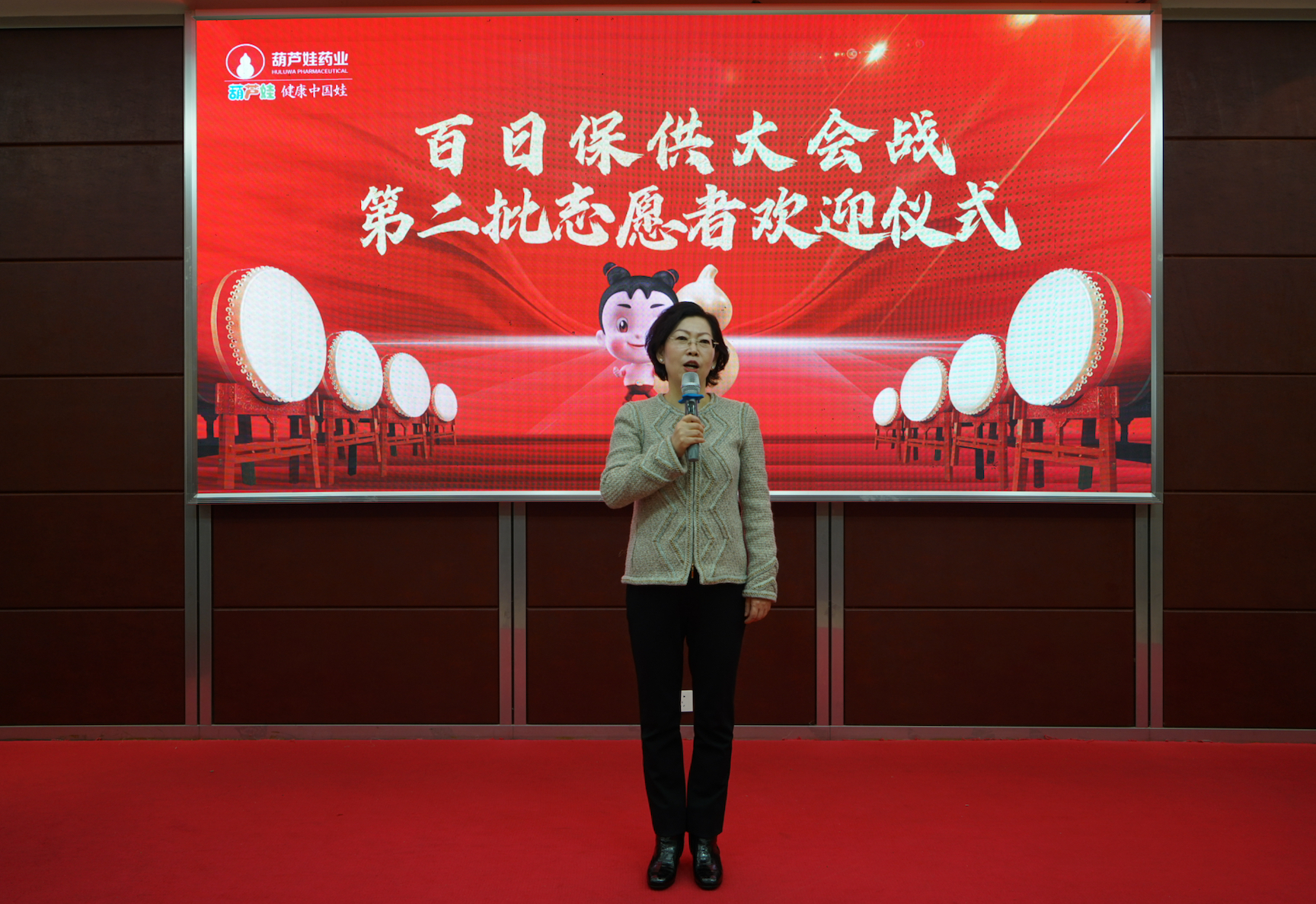 活动最后,刘景萍董事长做重要讲话及战前动员。她首先向第一批志愿者们的努力拼搏与无私奉献表示感谢。她指出,第一批志愿者在时间紧、任务重的情况下,充分发扬了“不怕苦、能吃苦、能战斗、能奉献”的精神,顺利完成了第一阶段的保供工作。紧接着,她向第二批志愿者的到来表示欢迎,感谢他们及志愿者家属们对集团保供工作的支持。